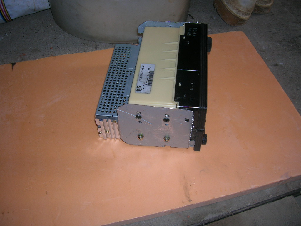 Но потом посмотрев в салон, нашёл место под пассажирским сидением. Не очень хотелось тащить провода через весь салон. Промерил и выяснил, что корпус в таком виде не влезет. Пришлось пилить его почти пополам: