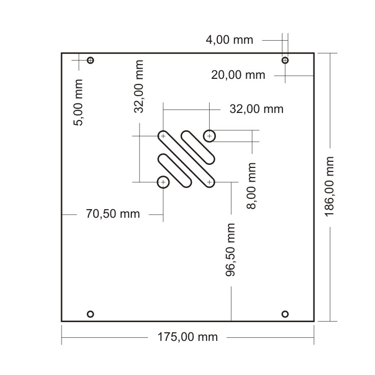 Начертил универсальный корпус для плат mini-ITX. Размерами получился 186Х186Х60. То есть увеличился на 10 мм в ширину и 5 мм в высоту.