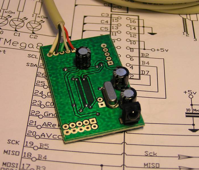 Посмотрев внимательно описание девайса и ПО, с каким он может работать, было принято решение сделать универсальный вариант. Т.е. такой, как описан на упомянутой страничке, но с доработками, позволяющими зашить в контроллер свой софт, и использовать как IR-MAN.