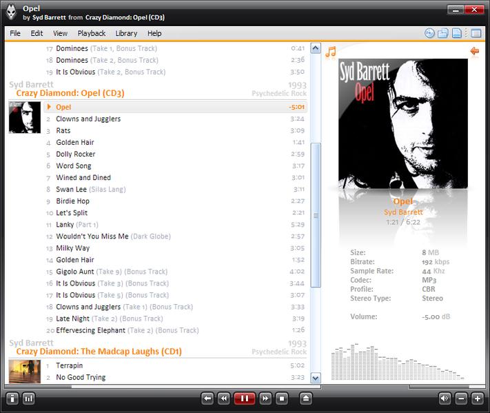 Прежде всего, в отличие от Winamp и его клонов, обычно понимающих лишь два-три основных звуковых формата, Foobar с самого рождения наделен способностью воспроизводить файлы форматов MP 3 ( Mpeg Layer III ), MP 2 ( Mpeg Layer II ), Ogg Vorbis , Musepack ( MPEG plus ), WAV E и т.д., причем путем установки соответствующих модулей (плагинов) данный список можно значительно расширить. Имея открытую архитектуру, Foobar поддерживает огромное число звуковых форматов, включая WMA , FLAC , Monkeys Audio , Speex , CDDA , MOD , XM , S 3 M , IT и многие другие, а такая небесполезная функция, как прозрачная работа с ZIP и RAR архивами, позволяет воспроизводить звуковые файлы без необходимости предварительной распаковки архива.