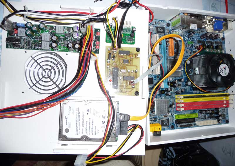Подключается адаптер через com-порт на внутренний разъем на материнской плате. Потому как так-же было на оригинальной схеме, а переделать на USB у меня в тот момент не хватило квалификации. Есть в этом и плюсы: нет проблем при просыпании из hibernate.