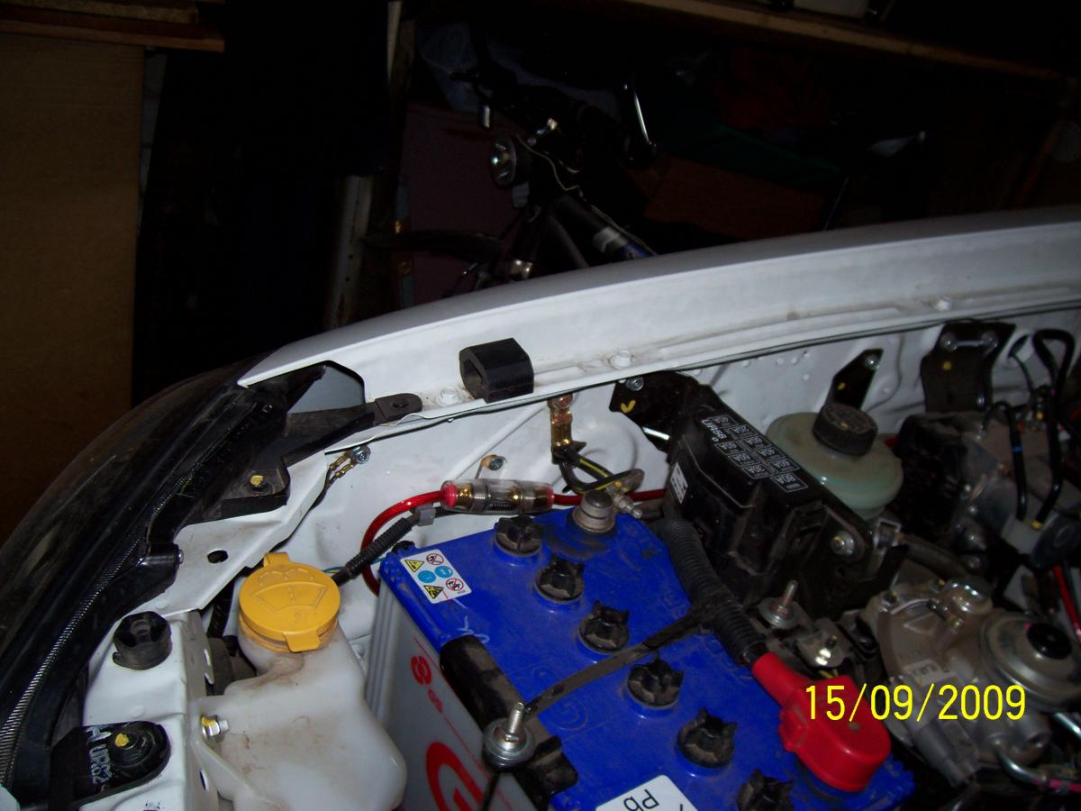 Провод протащил по центральному тоннелю до задней стенки. Там была установленна колодка для разводки питания на КАРПС и рацию. От колодки к ПК протащил провод 3квадрата(мм) С предохраанителем 15А Под правое переднее кресло