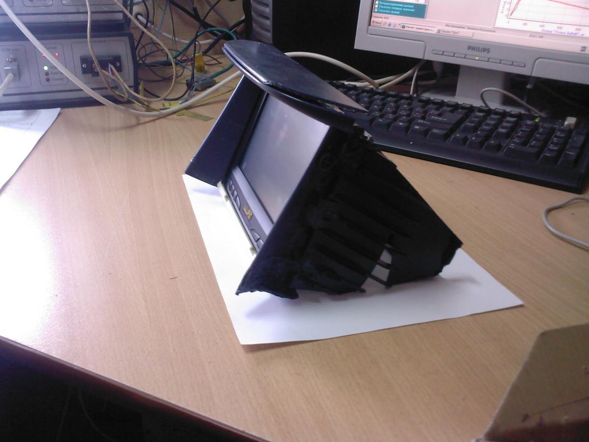 Сначала хотел сделать выезжающий монитор, но размеры и глубина углубления на панели не позволили сделать компактную конструкцию.