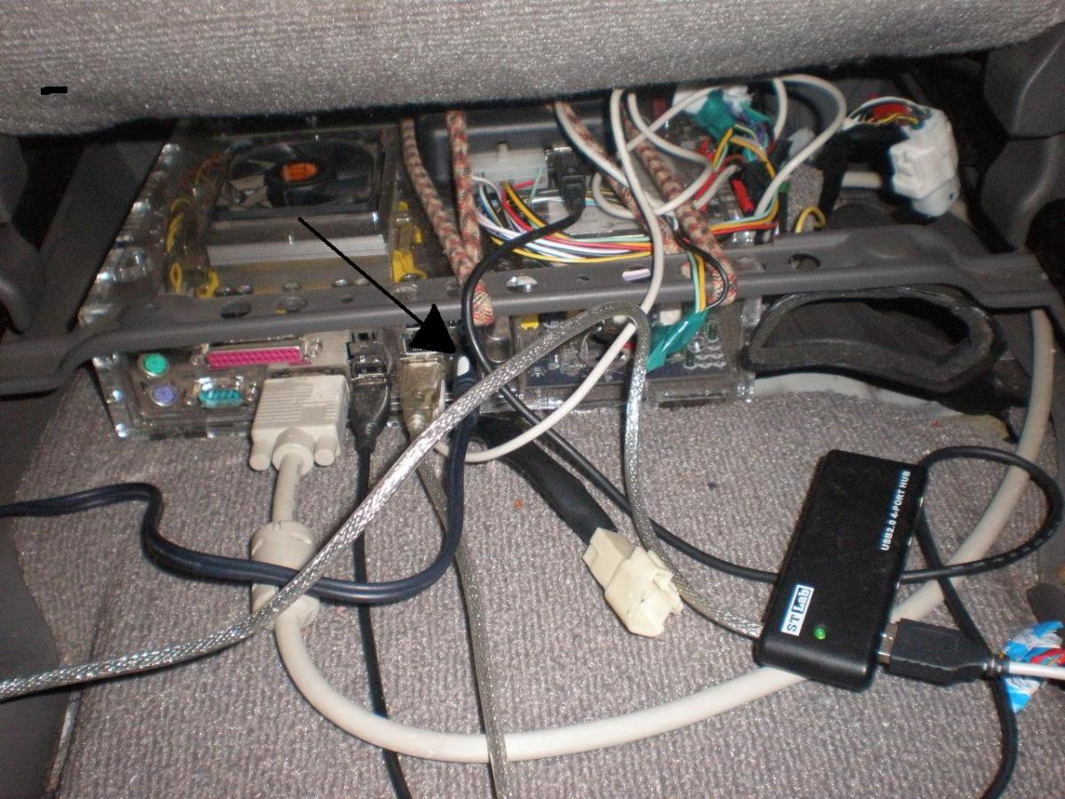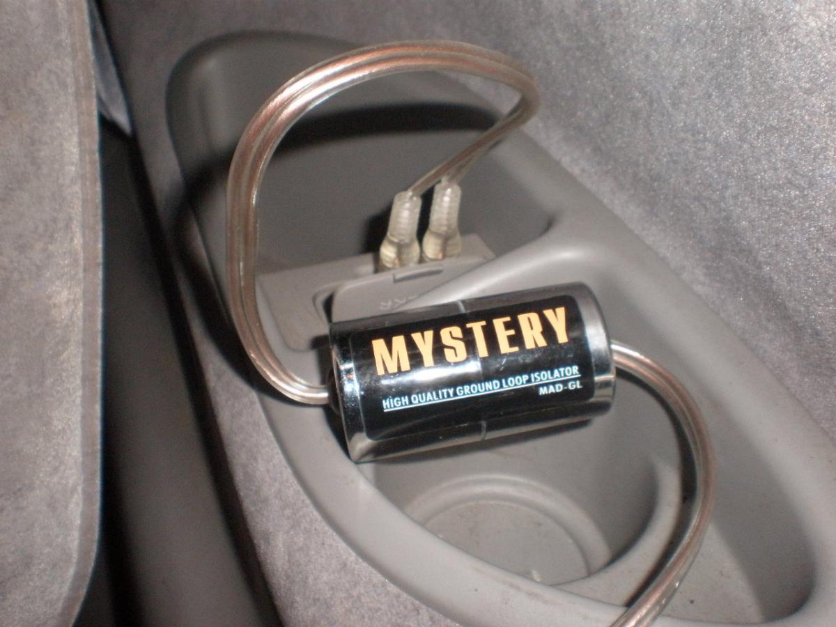 Но на данный момент у меня возникла небольшая проблемка. Перестал работать звук от компьютера. Т.е. радио, CD с магнитолы работают, а музыка и фильмы на самом компьютере - нет. Сегодня взял в машину наушники, и с ними все прекрасно работает. Т.е. определенно проблема в выходе на колонки. Я в этом понимаю мало, поэтому, возможно, выражаюсь коряво, извините. Далее прилагаю фото, на которых хорошо видно, как это осуществляется. От компьютера идет провод прямо по салону, вставляется зачем-то в фильтр для саба Mystery, хотя самого саба нет и по-моему не было, и потом уже в разъемы в конце салона. Звук был при покупке автомобиля, сейчас его нет. В чем может быть проблема, хочется музыку закачать и через компьютер слушать. Спасибо заранее