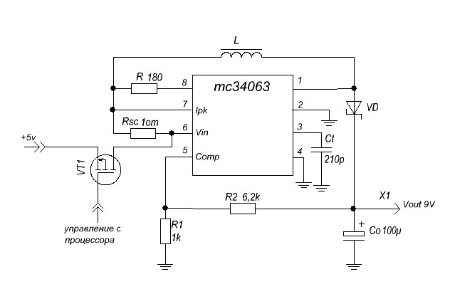 имеется удобный калькулятор для расчёта входовыходов http://bsvi.pp.ua/dc-dc-na-mc34063/