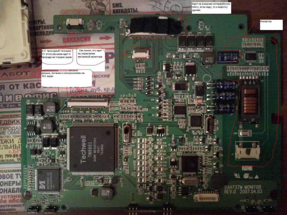 Привет. Короче мелкий у меня выдернул Mystery 8120 когда тот выезжал, ну выдернул с корнями...Провода, шлейф и т.д. Вскрыл, VGA и USB припаял на прямую, так как разъёмы и так фиговые, а здесь вообще поломались. В итоге тач не работает, вернее работает только в меню. При вставление шнурка USB новое устройство не определяется...его вообще не видно...шнур USB припаял правильно. Чего сгореть то могло? Заранее спасибо. Да забыл...шлейф большой был в разъёме перекошен, скорее всего некоторые контакты могли коротнуть...В остальном монитор работат без нареканий..