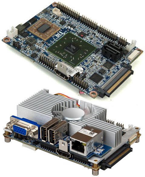Сердцем материнской платы выступает чип VIA Eden X2, функционирующий на частоте 1 ГГц. За обработку видео, в том числе и в формате HD с разрешением вплоть до 1080p, отвечает ускоритель VIA VX900H Media System Processor (MSP). Последний работает в паре с аппаратным HD-декодером VIA ChromotionHD 2.0, поддерживающим декодирование форматов H.264, MPEG-2, VC-1, WMV9 и HDCP. Для передачи видеосигнала предусмотрены выходы HDMI, VGA и LVDS. На борт может быть установлено до 4 Гбайт оперативной памяти стандарта DDR3. Кроме того, «малышка» оснащена дуэтом портов SATA II 3 Гбит/с и семью портами USB 2.0 (пять подключаются через разъемы на плате, два выведены на заднюю панель). Также присутствует поддержка вывода звука на 10 каналов силами ядра VIA Vinyl VT2021. За связь с внешним миром отвечает гигабитный Ethernet-контроллер.