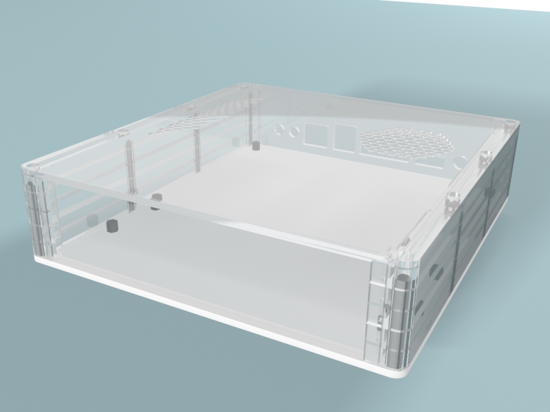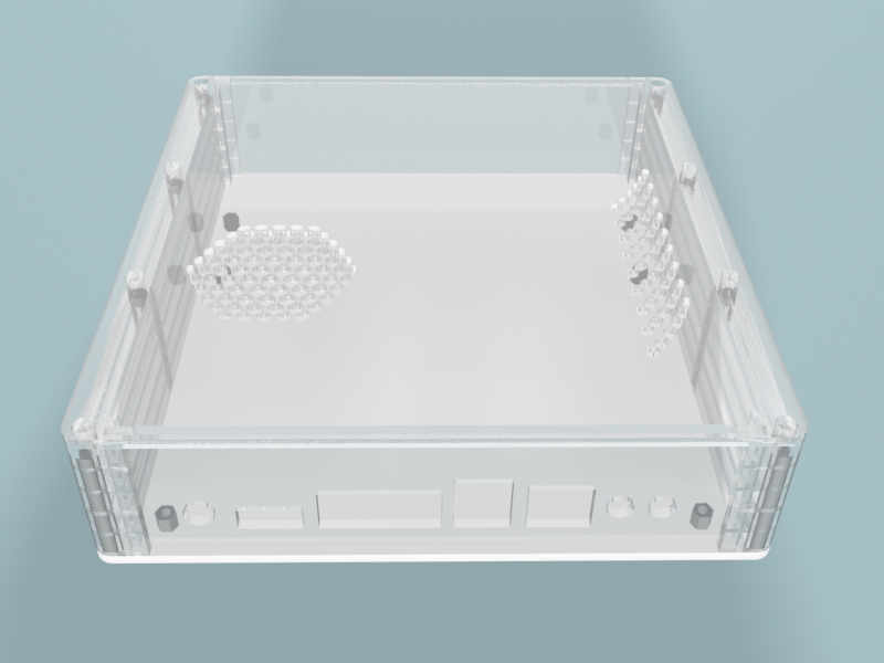 Вот еще проект корпуса из акрила. 180х50х190,5 мм. В корпусе будут размещены: мат. плата 155х117 мм, БП 160х45 мм, SSD. Можно использовать и для домашнего медиацентра, и в шахту 1DIN помещается. Материал прозрачный/молочно-белый/черный или любая комбинация из этих материалов.