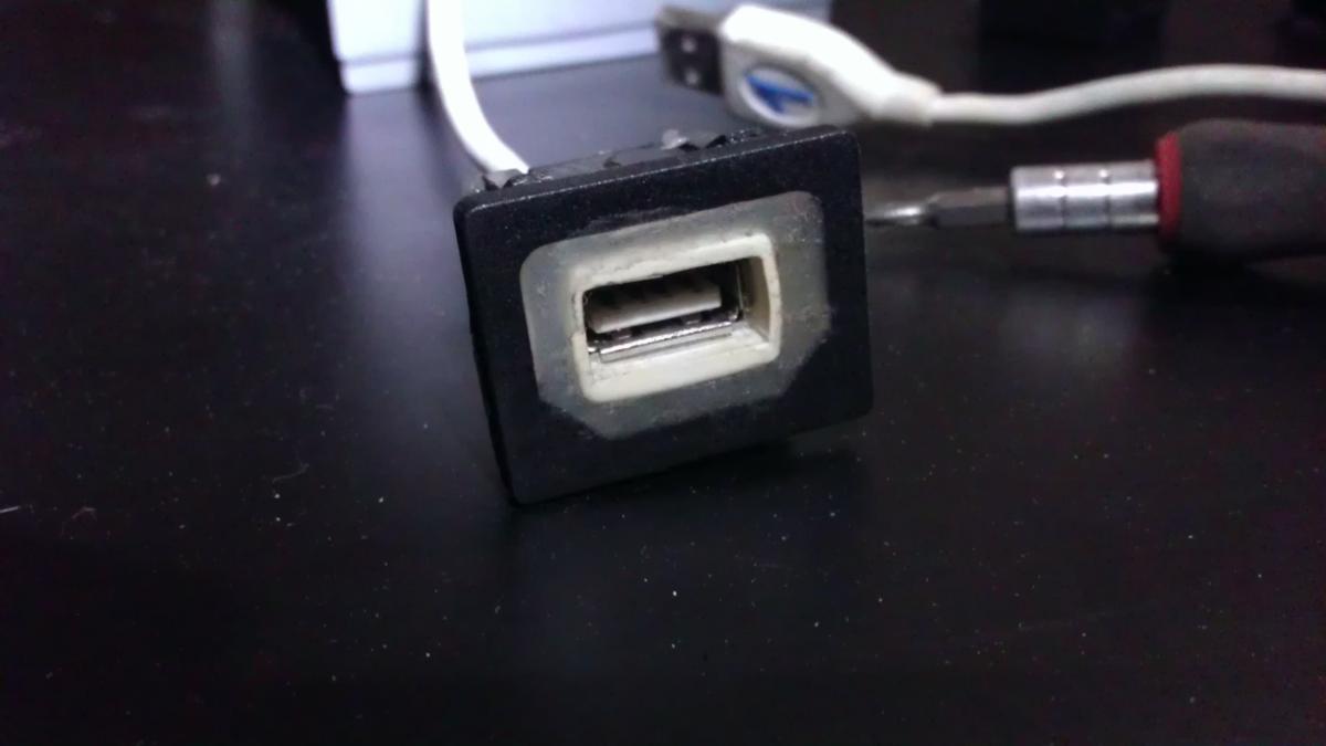 7. Вчера замутил удлинитель usb. Вкорячил его в подлокотник на место родного джека от магнитолы. Крепление изготовил из мамы ATX раздолбанного блока питания и залил термоклеем. В общем смотрим.