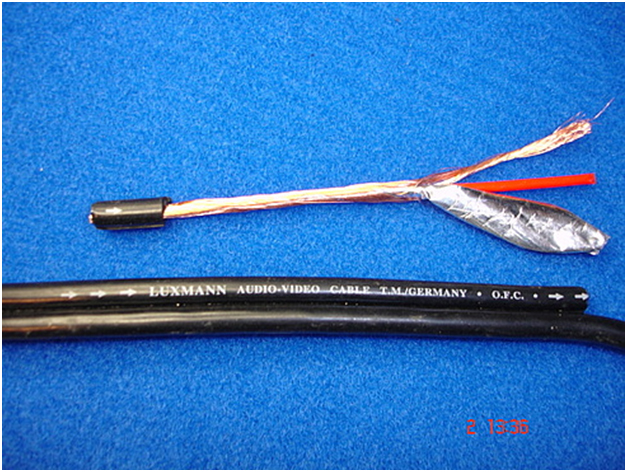 на базе последнего кабеля известная фирма по кабельной продукции еще лет 15 назад выпускала межблочные автомобильные кабели. Вот один у меня сохранился как тестовый))) Обратите внимание что с одной стороны у него выведен из под тюльпана кусочек экрана.