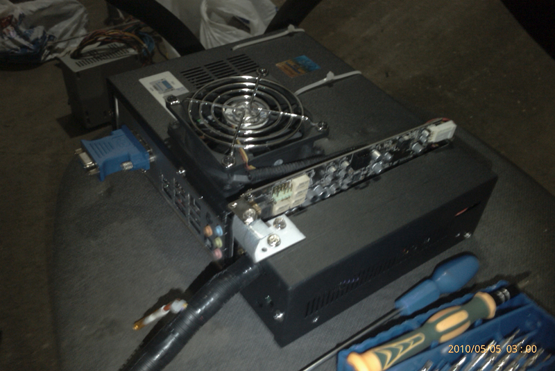 При построении первого проекта была сооружена вот такая веселая полочка под усь с кондеромСколочена из фонерки, стянута саморезами и перетянута карпетом.